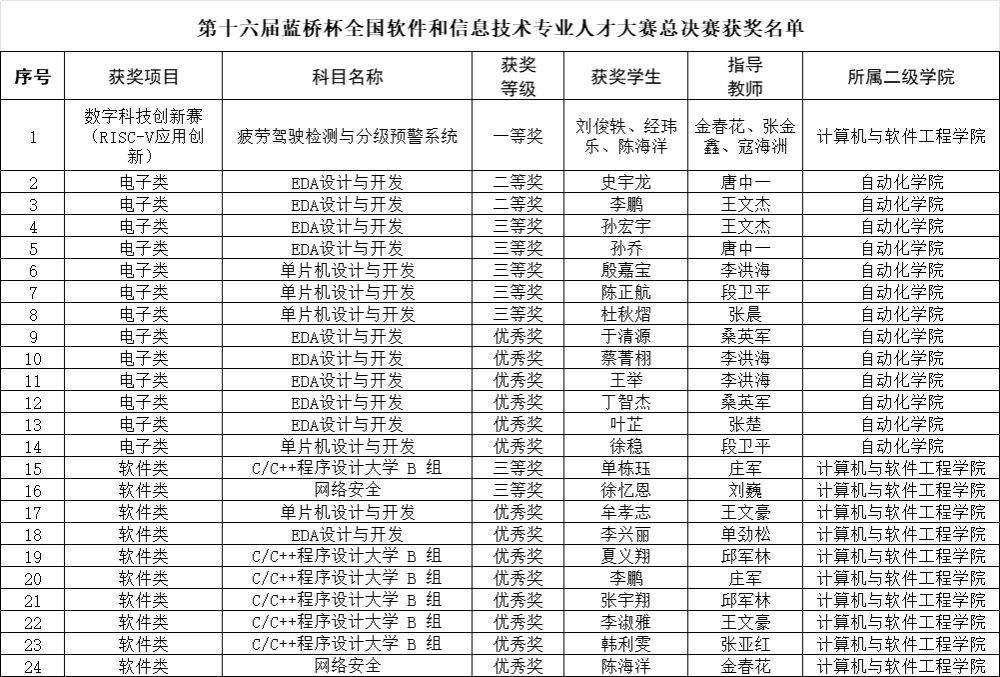 我校荣获第十六届蓝桥杯全国软件和信息技术专业人才大赛数字科技创新赛一等奖
