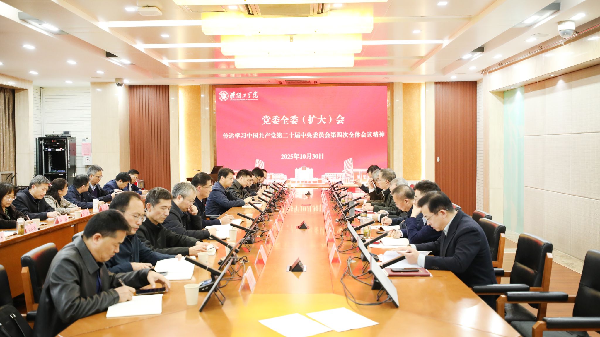 10月30日,我校在翔宇楼第一会议室召开党委全委(扩大)会,传达学习党的二十届四中全会精神,研究学习贯彻落实举措。党委书记常绿主持会议并讲话。