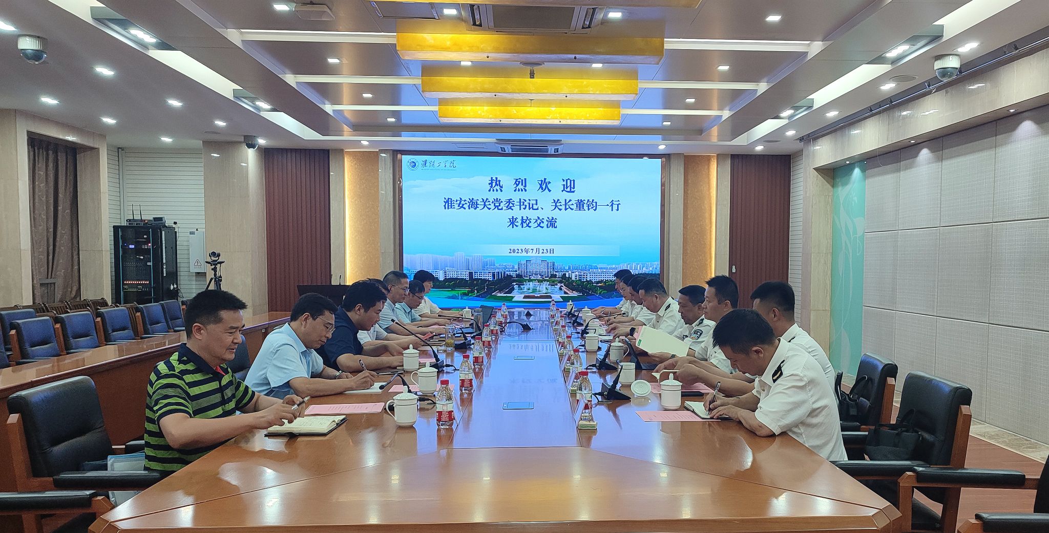 7月23日下午,淮阴工学院-淮安海关工作交流会在我校翔宇楼第一会议室举行。淮安海关党委书记、关长董钧,校党委书记孙爱武,党委副书记、校长常绿,副校长高尚兵出席会议。