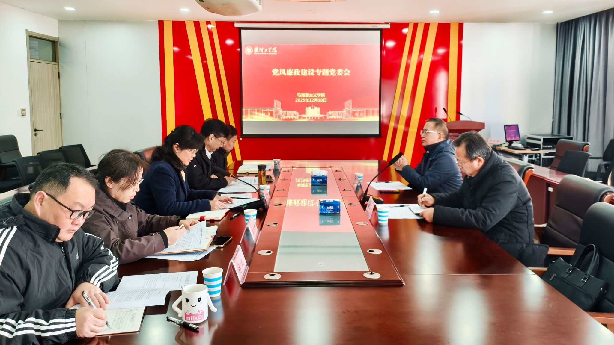 会上,翟明女领学了《求是》杂志2025年第4期发表的习近平总书记重要文章《健全全面从严治党体系》,并汇报了马克思主义学院2025年度党风廉政建设工作情况。马克思主义学院院长施坚就学院年度廉政风险点排查与防控情况进行了汇报。学院党委班子其他成员结合各自分管工作,汇报了党风廉政建设“一岗双责”履职情况。