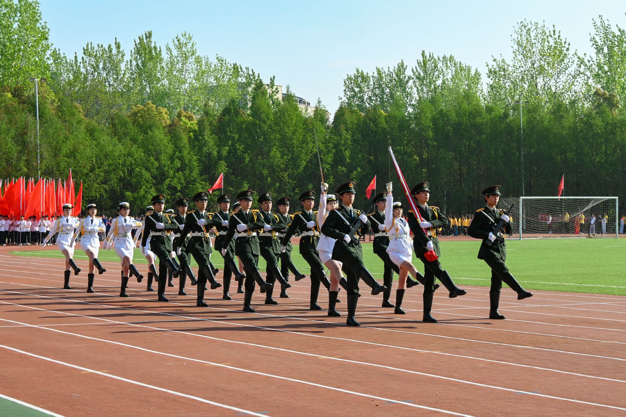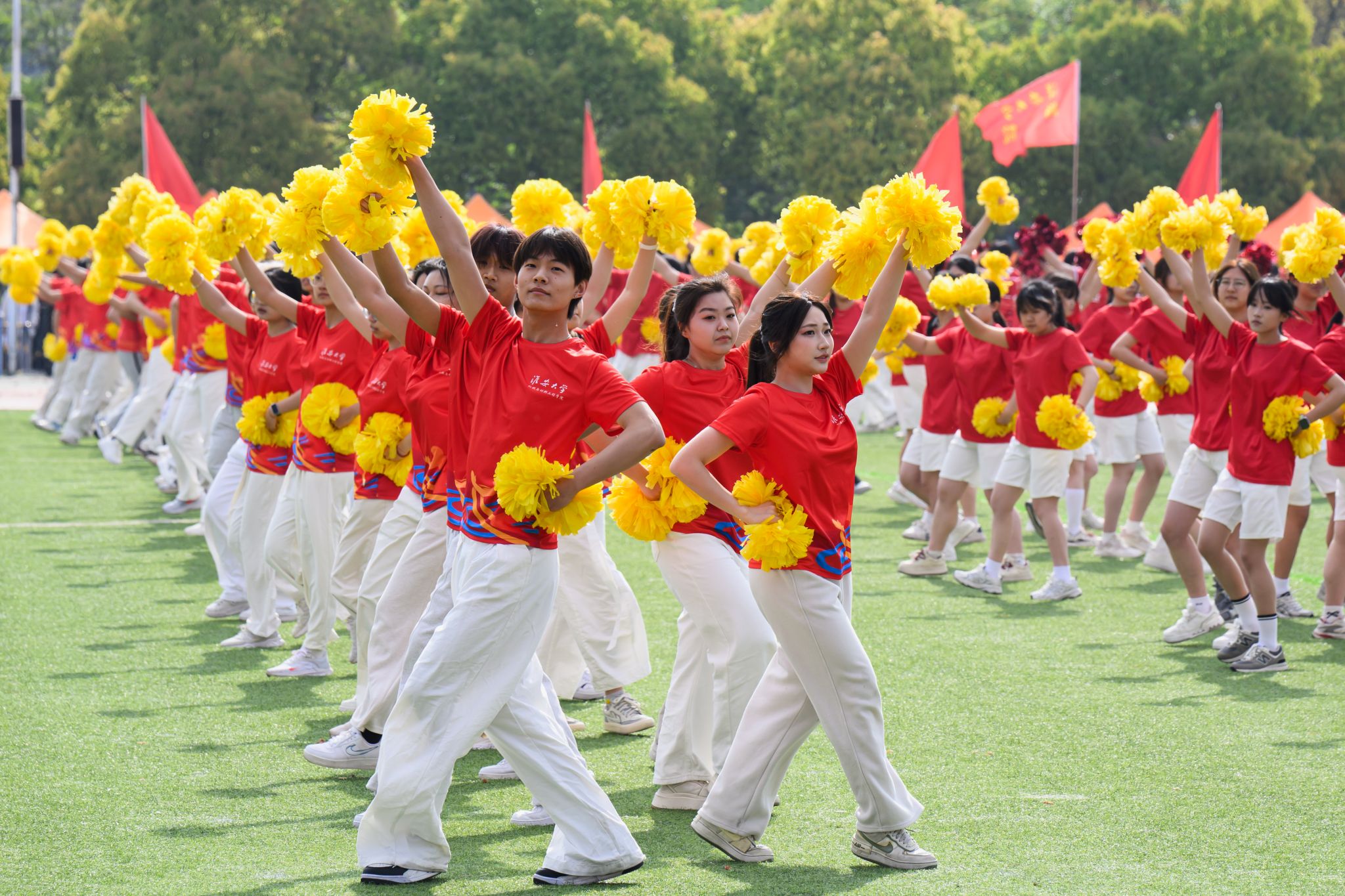 伴随着《运动员进行曲》的激昂旋律,在国旗方阵的引领下,各二级学院学生方阵和教职工方阵迈着整齐有力的步伐,精神饱满、意气风发地依次入场。各二级学院将学科优势、专业特色与时代精神融入入场式,创意十足、精彩纷呈的运动员方阵逐一亮相,充分展现师生们昂扬向上的风貌与活力。