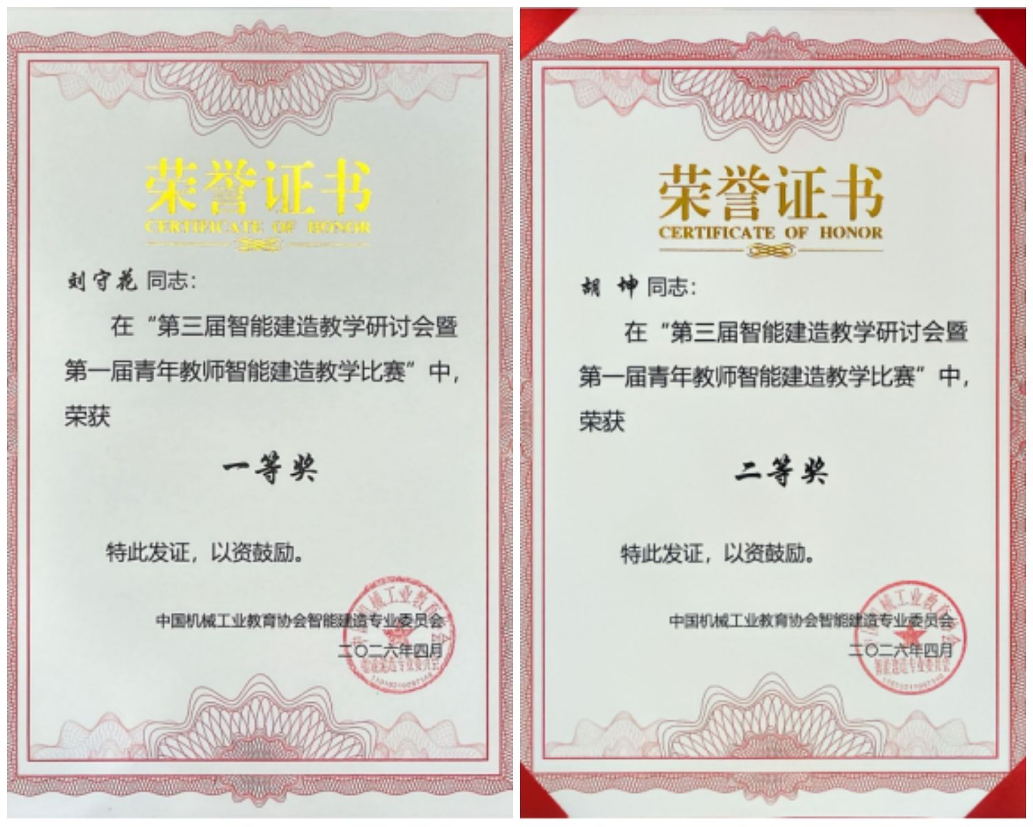 4月17日至19日,由教育部高等学校土木类专业教学指导委员会指导,中国机械工业教育协会智能建造专业委员会、合肥工业大学与苏州科技大学联合主办的第一届全国青年教师智能建造教学比赛在苏州举行。经过激烈角逐,我校建筑工程学院土木工程系刘守花老师斩获本次比赛的最高荣誉——一等奖,胡坤老师荣获二等奖。