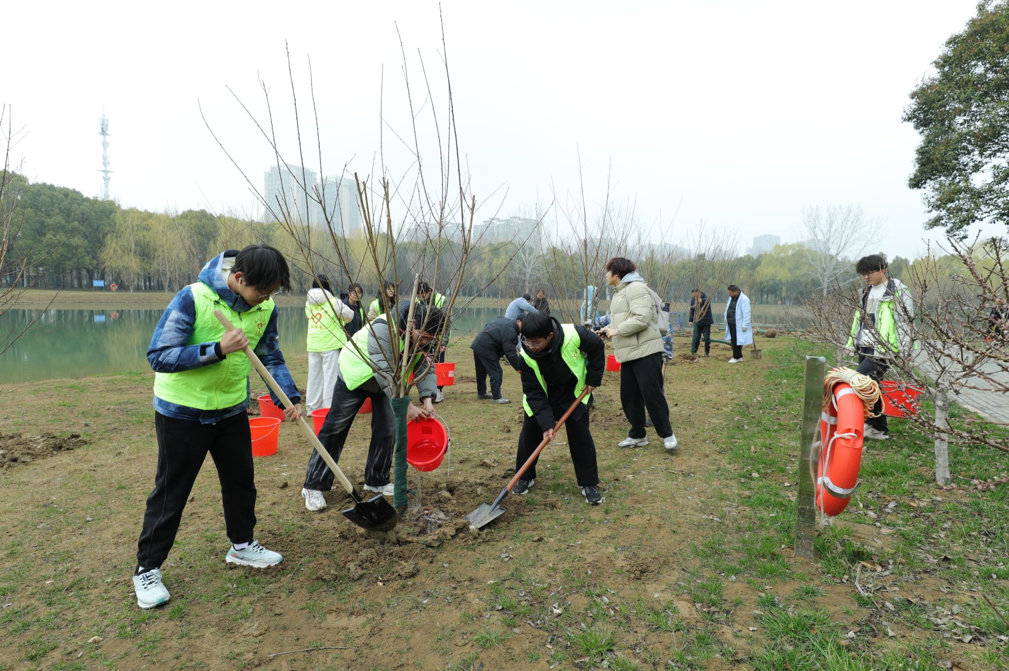 3月18日,为推进校园生态环境建设,我校后勤基建处在枚乘路校区南园桃花岛组织开展义务植树活动。副校长包旭、后勤基建处工作人员和部分学生志愿者参加活动。