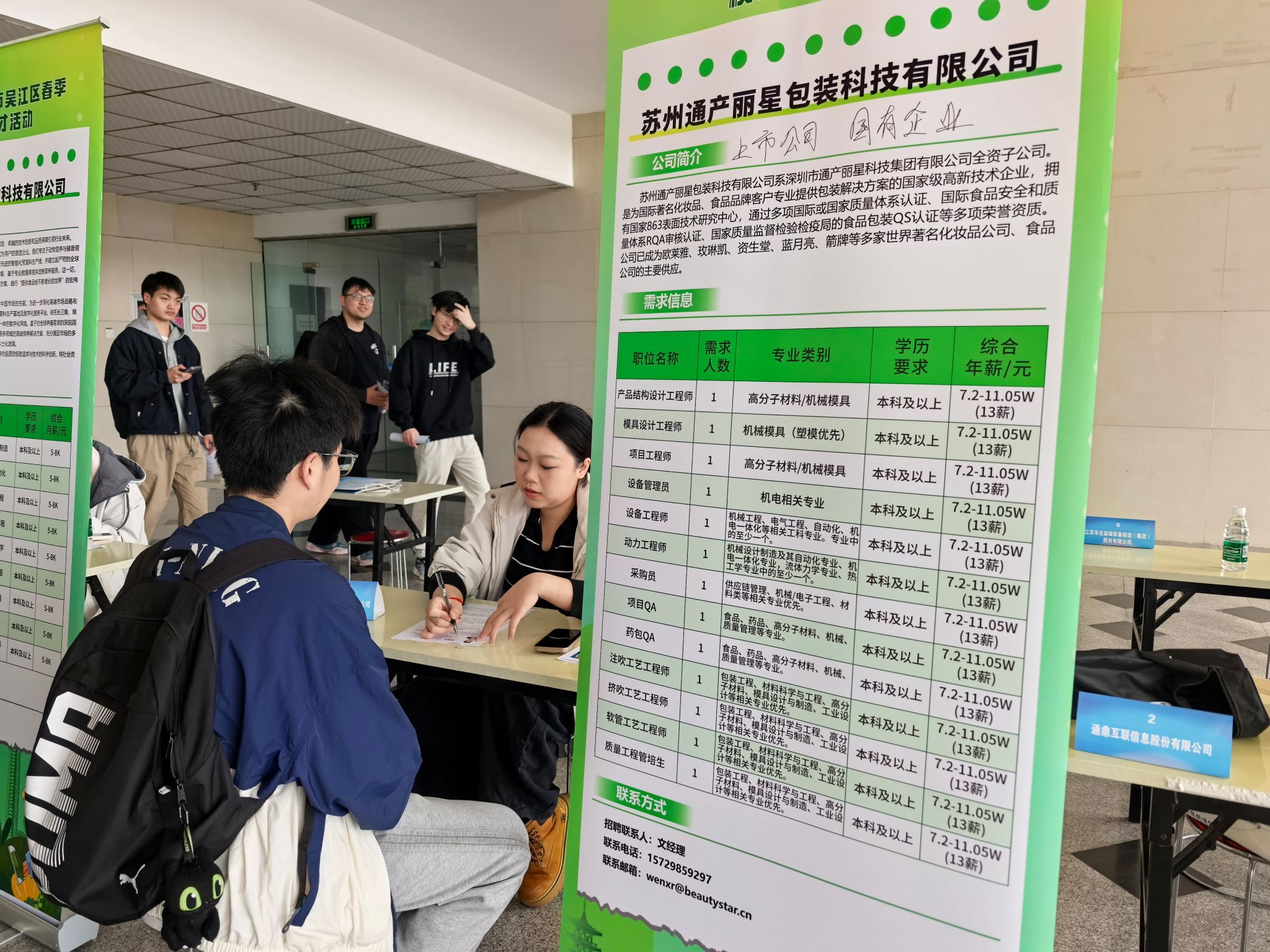 本次招聘会汇聚江苏恒力化纤股份有限公司、通鼎互联信息股份有限公司、苏州鼎芯光电科技有限公司等20家企业,提供高端装备、生物医药、电子信息等领域的技术研发、生产制造、运营管理、质量管理、客户经理等岗位。