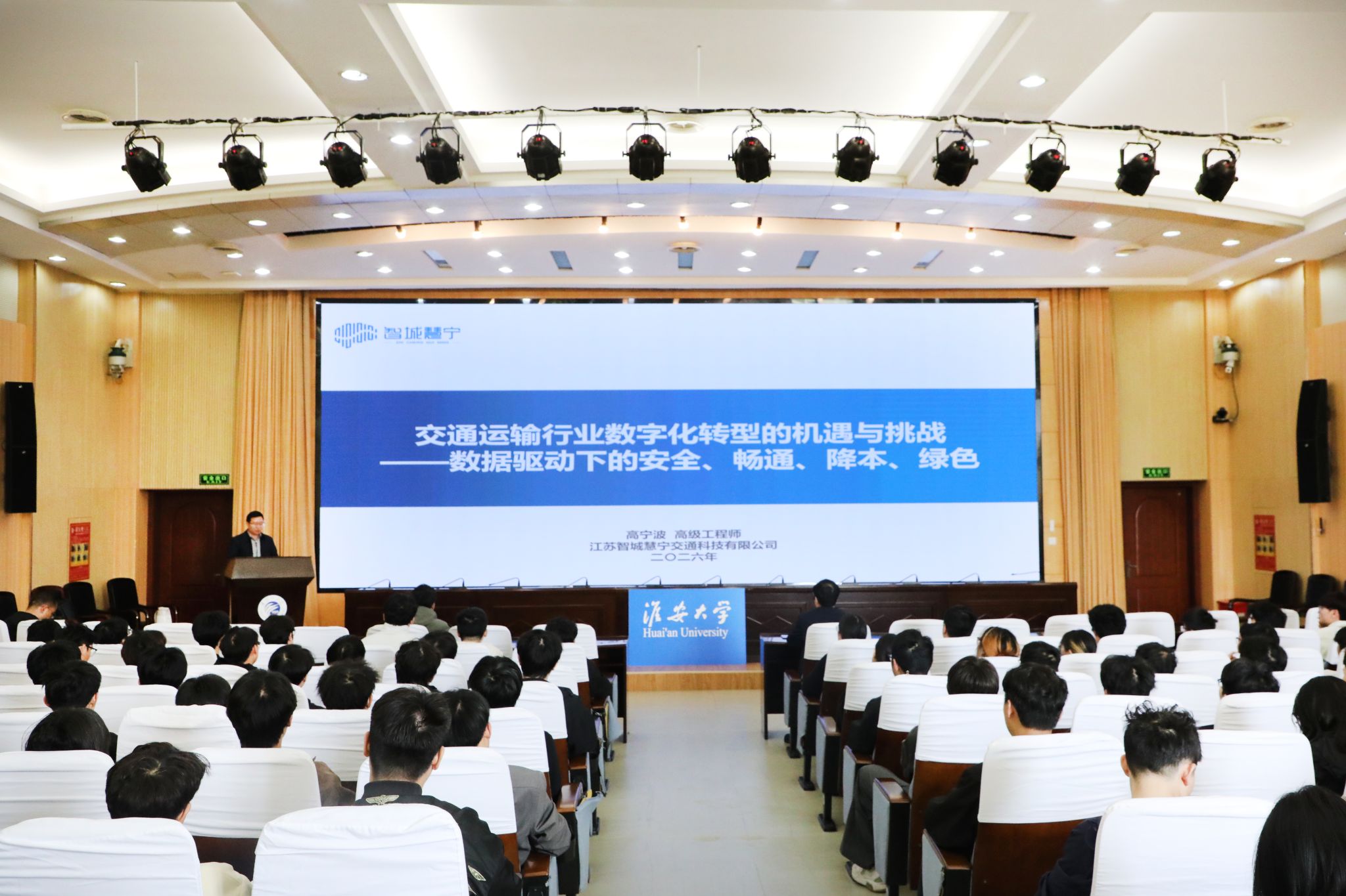 为贯彻落实省教育厅“产业对接课堂 赋能人才培养”校企共育行动部署,推动行业前沿实践与学校人才培养深度融合,4月15日和4月17日,我校在枚乘路校区举办两次“企业家进高校”前沿大课堂活动。江苏智城慧宁交通科技有限公司总经理高宁波、江苏卓易信息科技股份有限公司固件技术总监汪涛应邀分别以“交通运输行业数字化转型的机遇与挑战——数据驱动下的安全、畅通、降本、绿色”和“信创基础软件的技术突围与前沿实践”为题进行现场授课。全校近200名师生现场参加学习,报告同步通过线上平台面向全省高校直播。