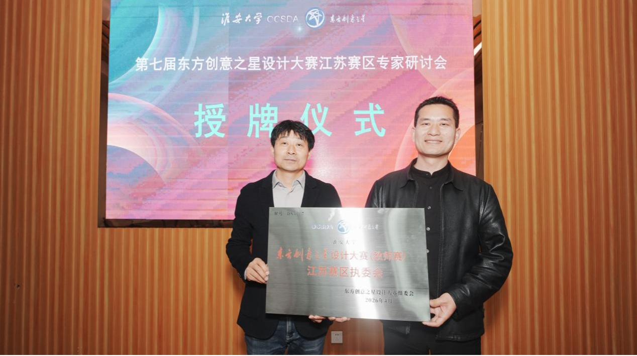 大赛组委会秘书长王炬代表组委会向我校设计艺术学院颁发“东方创意之星设计大赛江苏赛区执委会”牌匾,标志着大赛在江苏赛区的组织工作正式启动。