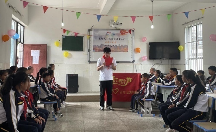 远山支教第九季志愿者宣读苏州府禄信息科技总经理祖道荣的一封信