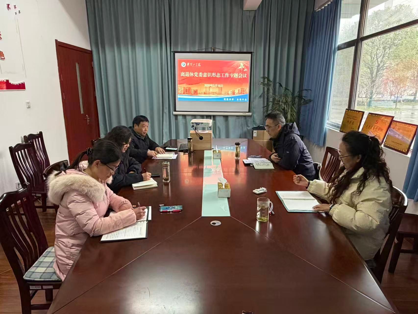 与会人员围绕离退休党委、离退休工作处意识形态工作开展情况进行深入交流,围绕大学更名、落实老同志待遇等重点问题全面梳理当前意识形态领域风险点,研判风险形势。大家一致表示,要坚持守土有责、守土负责、守土尽责,把意识形态工作融入离退休党建与服务管理全过程,强化思想引领、阵地管理与舆情防控,切实维护意识形态领域安全稳定。