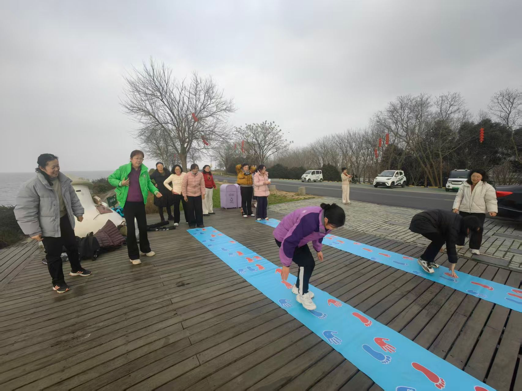 随后,女教职工们来到风光旖旎的洪泽湖大堤,开展 3 公里健步走与素质拓展训练活动。春日暖阳洒遍湖堤,大家精神抖擞、斗志昂扬,在健步前行中感受春日美好,在趣味拓展中凝聚团队合力,矫健的身影成为洪泽湖畔一道靓丽的风景线,充分展现出淮安大学女教职工昂扬向上、勇毅前行的巾帼风采,全体人员齐心协力、争先奋进,顺利完成各项预定活动任务,为本次主题活动画上圆满句号。