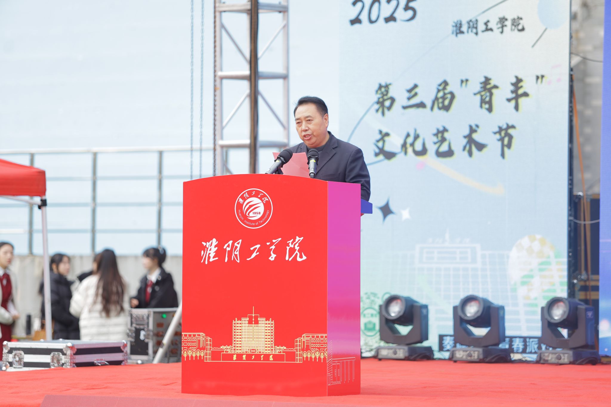 秦家沛为本届“青丰”文化艺术节致辞并为提出三点希望:一是深耕文化浸润,打造淮工特色。要进一步挖掘校园文化内涵与淮安红色资源,将周恩来精神风范融入活动全程,让文化艺术节成为传承红色基因、彰显学校特色的重要载体。二是突出学生主体,激发青春活力。要充分尊重学生的创意与需求,让学生成为活动的策划者、参与者、受益者。三是做好服务保障,确保安全有序。相关部门要通力协作,为师生营造安全、舒适的活动环境。