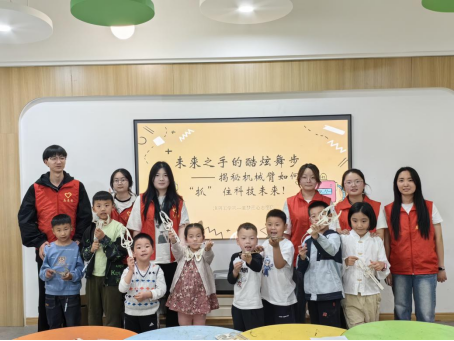 童梦机匠志愿队成立于2024年6月,2025年获批立项以来,传承了往年优秀经验与成熟做法,持续深化与淮阴区码头镇的校地合作,同时不断拓展实践阵地,新增与淮安市少儿图书馆的校地共建实践平台,进一步扩大了服务覆盖面与社会影响力。团队立足机械工程等专业学科优势,将专业知识融入趣味课堂,组织开展“机械之旅,点亮童梦之光”科普教育系列活动,如“小小创客闯工厂,科技奥秘我来寻”校园研学活动、“灵动机械臂,童梦新启航”等,通过游戏化教学、线上线下结合的互动式学习方式,以及简单有趣的实验操作和个性化教学内容,让儿童在动手实践中学习科学原理。