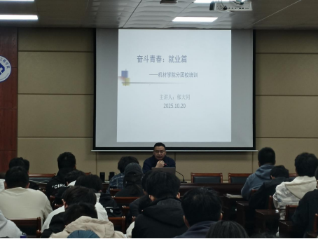 为帮助团员青年精准把握就业形势,科学规划职业发展,全面提升就业核心竞争力,10月20日,机械与材料工程学院分团校成功举办《明晰方向,赋能未来:奋斗青春·就业篇》青马工程培训班第二讲。本次讲座由学工办主任郁大同担任主讲,围绕就业形势、职业规划与求职技能等维度,为同学们带来了一场内容丰富、指导性强的专题讲座。