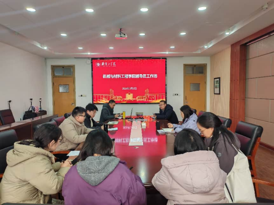 为深入贯彻落实新时代学生心理健康工作相关要求,切实提升辅导员心理育人专业素养与实操能力,筑牢学生心理健康安全防线,3月3日,机材学院召开大学生心理健康主题辅导员工作坊,学院党委副书记、副院长王明霞以及全体辅导员参加,工作坊由王明霞主持。