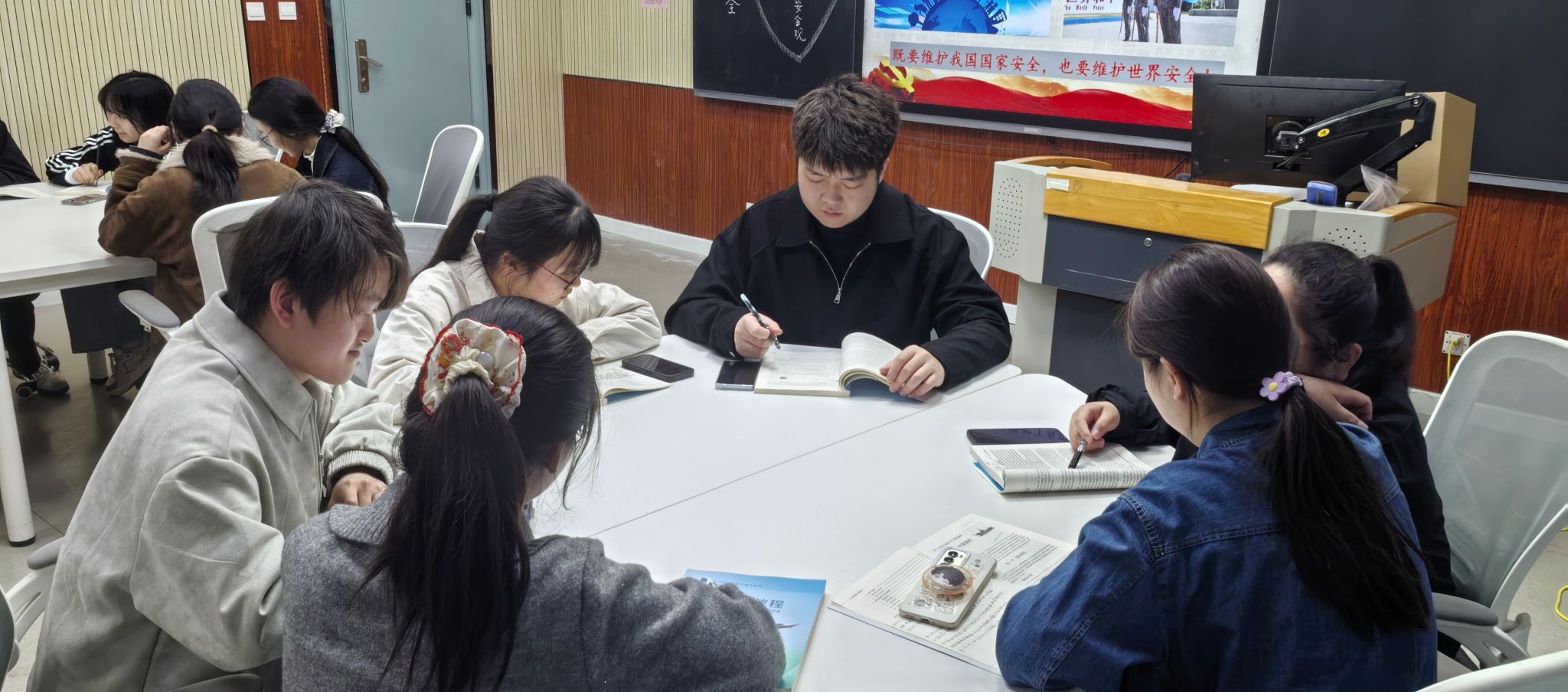 在“时代问安危”研讨环节,师生围绕美伊战争等国际热点事件,运用AI工具开展小组合作探究,从能源安全、经济安全、海外利益安全、政治安全、社会安全、网络安全等多维度分析国际局势对我国国家安全的传导影响。同学们结合自动化专业特点,深入探讨关键基础设施安全防护、工业控制系统安全保障等技术议题,展现出将专业所学融入国家安全实践的主动思考。研讨中,“大安全”理念的系统阐释让同学们认识到,当前我国国家安全的内涵和外延比历史上任何时候都丰富,时空领域更宽广,内外因素更复杂,必须居安思危、坚持底线思维。