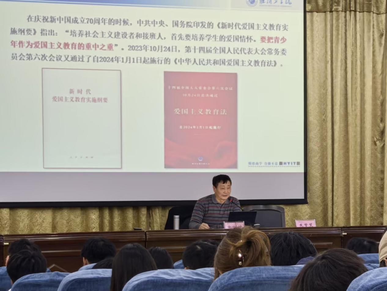 11月3日晚,电信学院在图书馆报告厅组织开展“践行社会主义核心价值观,厚植爱国情怀”主题团课活动。本次讲座由淮阴工学院关工委秘书长张乃钟担任主讲,青马工程培训班全体成员参加。