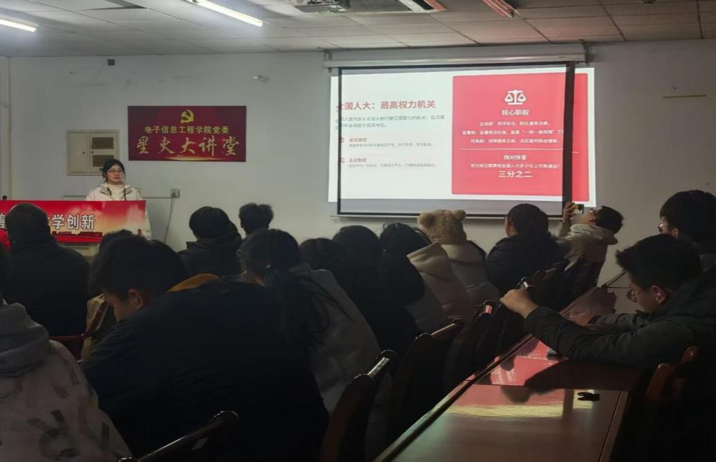 班级宣讲赋新能,知行合一践法治。电科1251、人工智能1251团支部以 “守宪于心,践法于行”为主题,通过PPT 系统梳理宪法起源、核心条款与国家机构职权,同时聚焦民间偶发轻伤害案例,通过案例剖析、情景演绎、法理阐释三维发力,将抽象条文转化为具体认知。学子围绕纠纷始末激烈思辨,还原事件、解读刑事,让学子直观感受 “小事慎为,违法必究” 的法治准则。