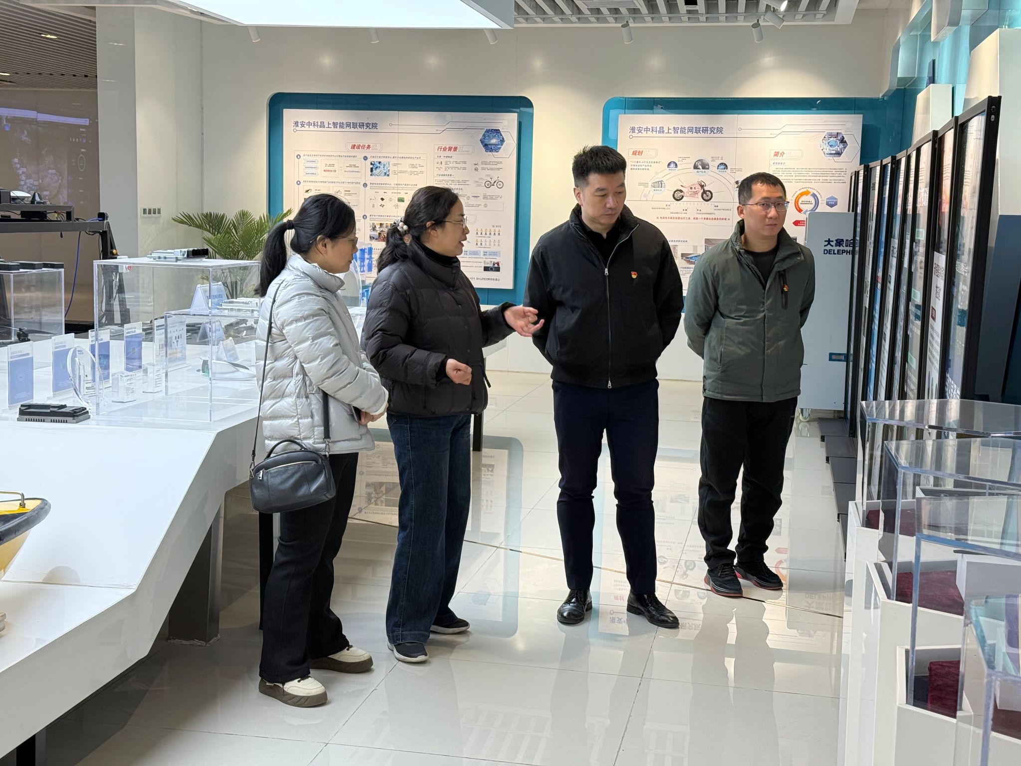 2025年12月9日上午,第二批江苏省党建工作样板支部、江苏省教师“双带头人”党支部书记“强国行”专项行动团队、淮阴工学院电子信息工程学院教师第三党支部赴淮安中科晶上智能网联研究院有限公司开展主题党日实践活动,学院党委书记韩飞、公司经理熊素凤、教师第三党支部书记王晓燕教授和部分专业教师参加本次活动。