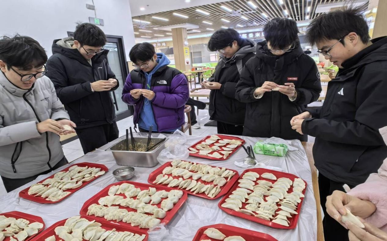 活动筹备阶段,班级团学干部主动担当,精心统筹食材采购、场地布置等工作,从新鲜食材的挑选核验到工具的整齐分发,全程细致把控,为活动顺利开展筑牢基础。活动现场暖意融融、热闹非凡,团员们围桌而坐,分工协作和面、擀皮、调馅、包饺子。手法娴熟的团员主动传授技巧,初次尝试的团员虚心请教摸索,形态各异的饺子在欢声笑语中逐渐摆满托盘。当热气腾腾的饺子出锅,团员们围坐品尝亲手制作的美食,鲜香的味道中饱含着劳动的喜悦与集体的温暖。此次活动不仅让团员们体验了冬至节气的独特魅力,更在协作互助中拉近了彼此距离,有效增强了班级的向心力与凝聚力。