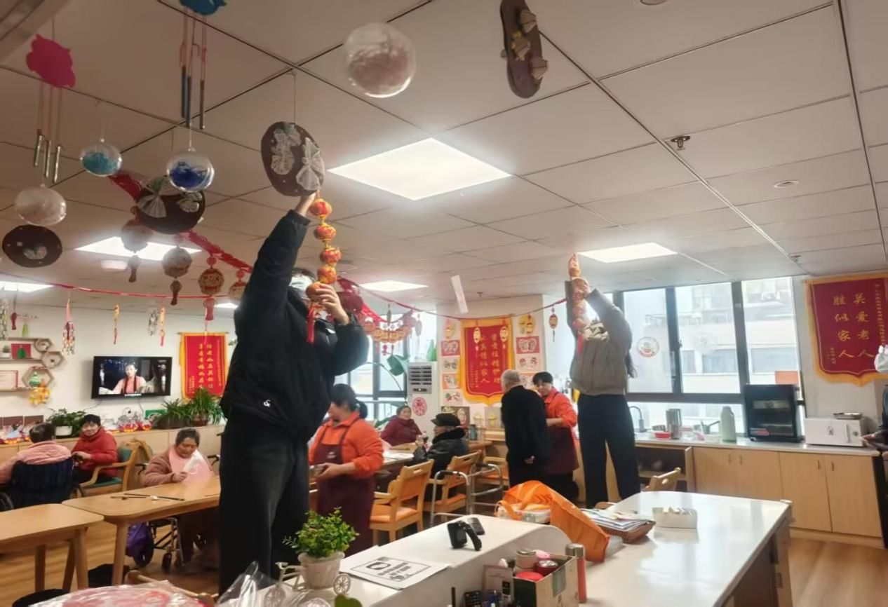 张灯结彩,喜迎新年。为营造浓厚温馨的节日氛围,实践团成员分工协作,贴窗花、挂灯笼、贴福字。红彤彤的装饰将养老院装点得格外温馨热闹,老人们看着满院喜庆祥和的布置,脸上洋溢着幸福满足的笑容,也提前感受到了浓浓的年味。
