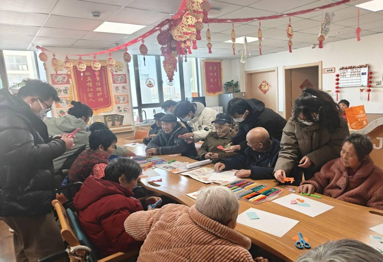 巧心手工,温情陪伴。在专业知识科普之外,实践团还暖心参与了养老院的趣味手工活动。成员们与老人亲切围坐在一起,耐心细致地协助完成折纸、粘贴类手工作品,在一折一叠、一粘一贴的温柔互动中,传递着真挚的陪伴与关怀,让养老院里时时充满欢声笑语。