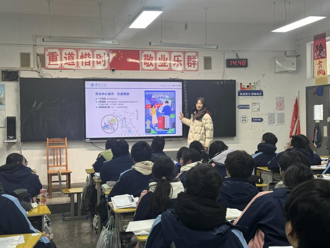 在高二班级宣讲现场,团队成员率先播放了精心制作的校园宣传短片,随后结合PPT演示,生动直观地展示了淮阴工学院现代化的教学场馆、设施完备的人工智能专业实验室,以及丰富多彩的社团活动、学术讲座等校园生活场景。针对高中生最为关心的专业选择、发展前景等问题,成员们结合自身的学习经历与成长感悟,详细解读了人工智能专业在智能制造、智慧医疗、大数据分析等热门领域的应用场景,重点介绍了学校“工科优势显著、多学科协调发展”的学科布局,以及人工智能专业的人才培养模式。宣讲内容干货满满,引发了在场同学的广泛共鸣。