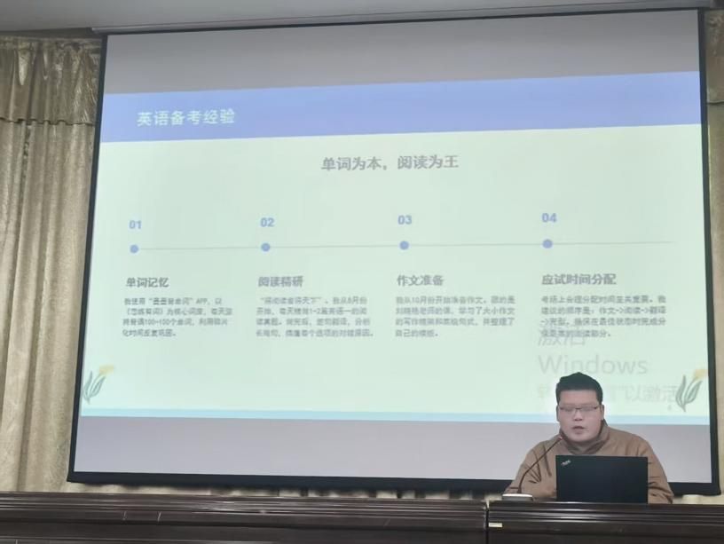 本次大会特别邀请2026年研究生考试最高分获得者樊新宇同学,现场分享独家备考经验。樊新宇结合自身普通学子的备考经历,毫无保留地讲述了全程备考的心路历程与实操方法,从备考初期的目标确立、计划制定,到中期的时间管理、重难点攻克,再到考前心态调适、考场应试技巧,全流程、全方位地进行细致讲解。他强调,考研成功不靠天赋异禀,贵在持之以恒、方法得当,鼓励在场同学坚定信念、合理规划节奏,拒绝盲目攀比、摒弃焦虑内耗,脚踏实地朝着目标稳步前行,真挚的分享让全体同学深受启发、倍感鼓舞。