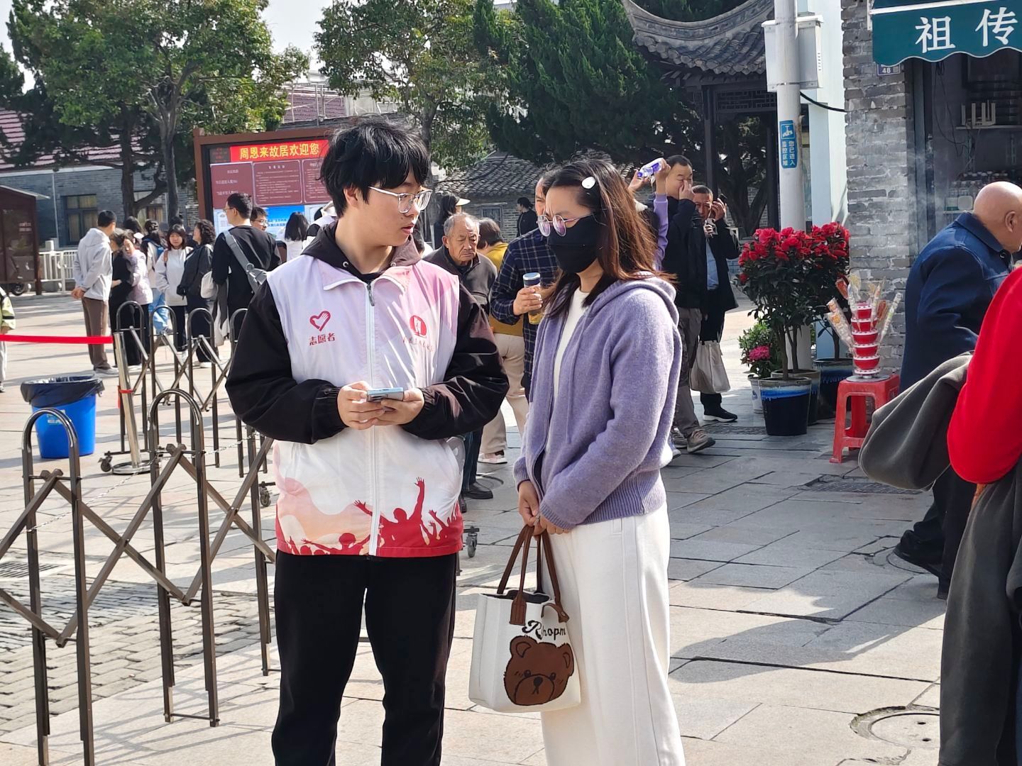 电信学院学生第一党支部成员、研究生李佳康是今年志愿服务团队中的骨干之一。他分两天分别在周恩来纪念馆和周恩来故居开展服务,既要协助景区工作人员维护参观秩序,也要为来自全国各地的游客解答疑问。“很多游客是专程从外地赶来的,我们多一份耐心,他们就能多一分感动。”李佳康说。