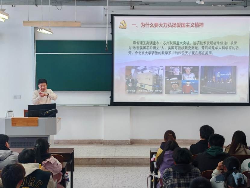 作为学院新学期思想政治教育的重要开篇,本次信仰公开课以“传承爱国精神,勇担时代使命” 为主线,内容层层递进、干货满满。课堂伊始,薛建明教授围绕 “新时代弘扬爱国主义精神的现实意义” 展开论述,结合当前国际形势与国家发展需求,用鲜活案例阐释爱国主义并非抽象概念,而是与青年成长、学科发展紧密相连的行动指南,迅速引发在场同学的深度思考。