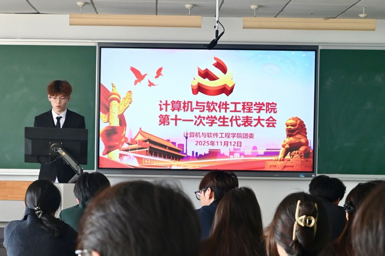11月12日,计算机与软件工程学院第十一届学生代表大会在枚乘路校区YF0604教室举行。本次大会应到56人,实到56人。院党委副书记孙凯军、院学工办主任杨文杰、院团委副书记朱天宇出席大会。