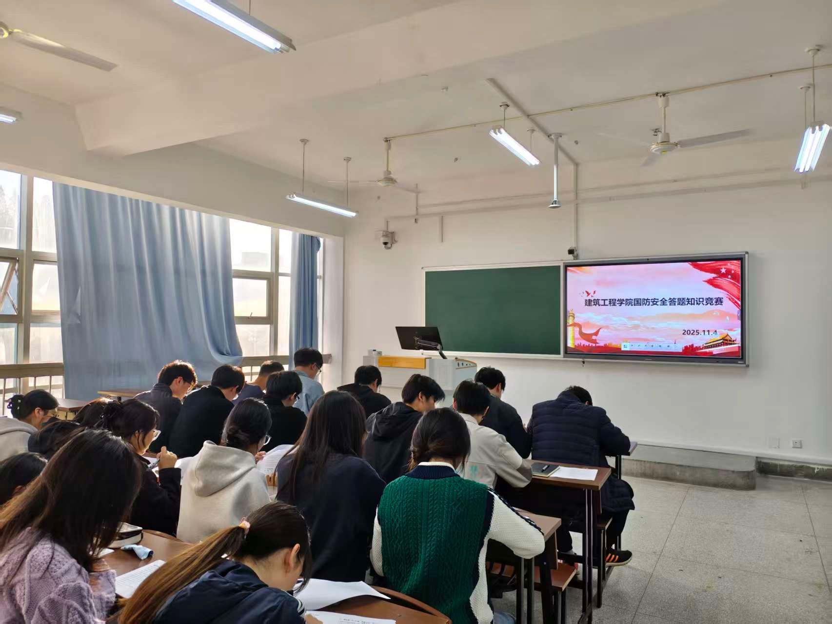 为深入学习贯彻总体国家安全观,切实弘扬爱国主义精神,进一步强化学生党员的国防意识与责任担当,11月4日,建筑工程学院在品学楼1305教室专题举办国防知识竞赛,学院学生土木支部党员积极参赛,以赛促学、以学践悟,筑牢国家安全思想防线。