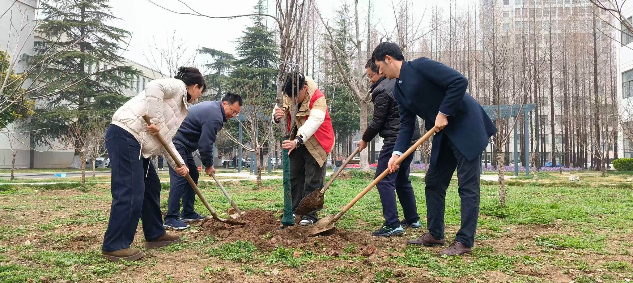 3月18日,由建筑工程学院党委与淮安大学北京路校区管委会联合举办的“砼心筑梦 桃李满园”主题植树活动在北京路校区桃李园内举行。此次活动将专业精神、劳动实践与思政教育融为一体,成为一堂生动的户外育人课。北京路校区管委会主任马建村,建工学院党委书记夏雪芹、院长陈亚东及领导班子成员与师生代表共同参与本次活动。