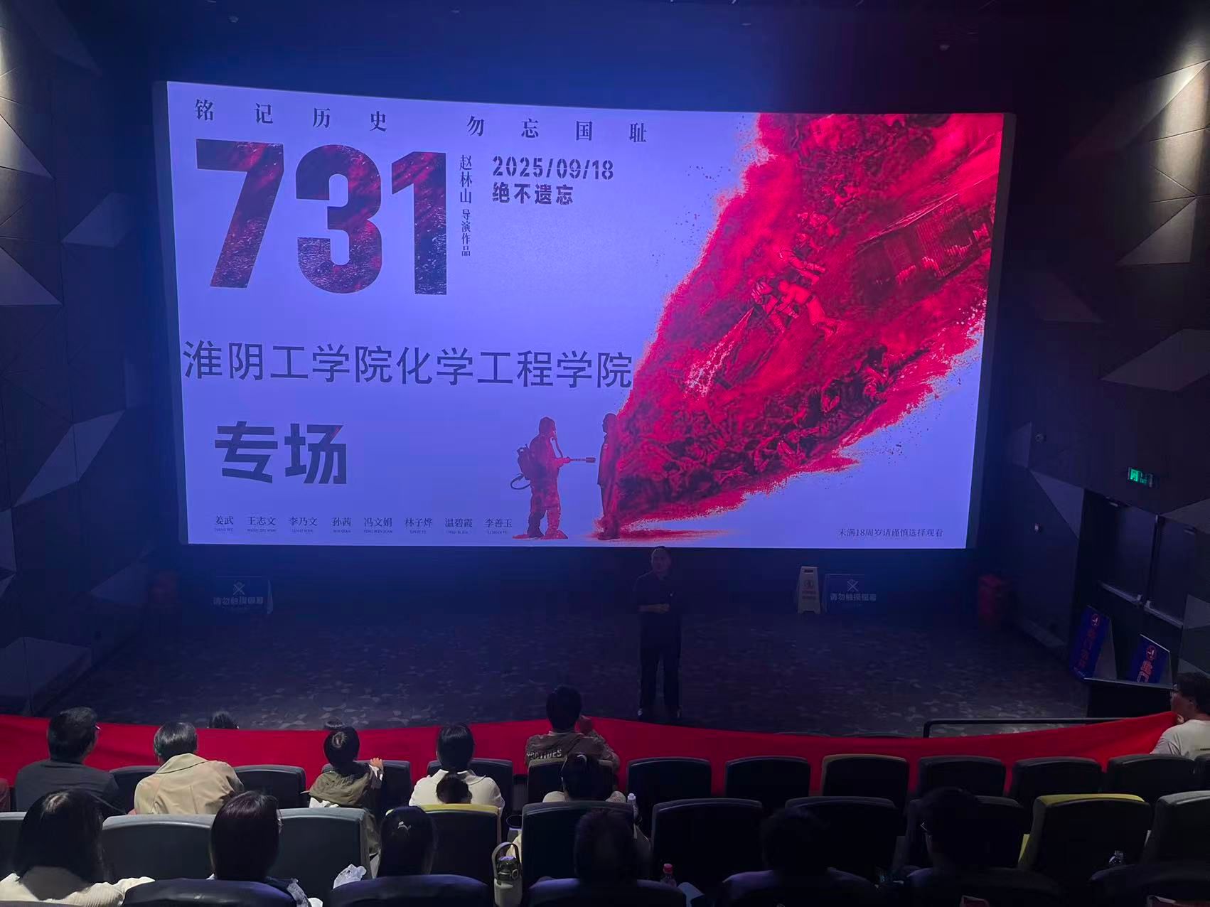 2025年9月18日晚,淮阴工学院化学工程学院党委以“铭记历史 勇担使命 砥砺奋进 开创未来”为主题,组织全体师生党员开展主题党日活动,集体观看热映影片《731》,通过沉浸式历史教育,强化党员的责任担当与爱国情怀。