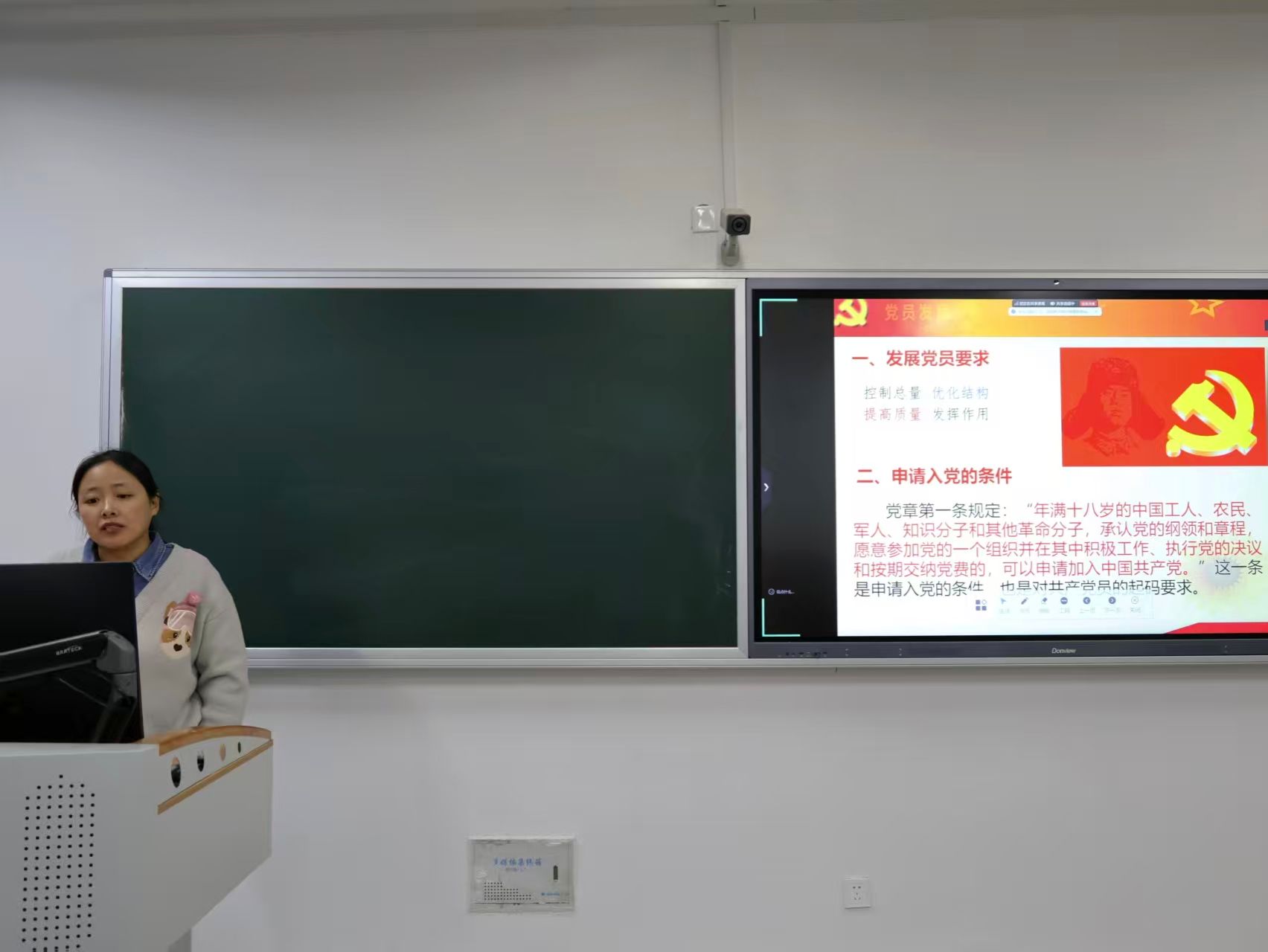 在关键的发展党员步骤与重点环节,王萌老师拆解了从提交申请到转正的全流程,重点标注各阶段时间节点与材料准备要求;最后,她结合优秀范文,手把手指导学生如何撰写入党申请书,强调要体现真情实感与思想成长。