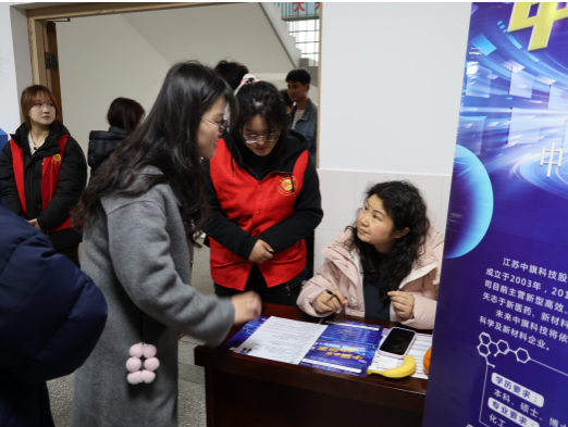 活动现场秩序井然、氛围热烈。扬子江药业集团、江苏汉邦科技股份有限公司、江苏百思凯资源循环科技有限公司等上市企业及行业龙头企业等近30家企业单位精心布置展位,系统展示企业概况、招聘岗位、薪资待遇与发展前景,为学子们提供了涵盖化工、制药、高分子材料、环境工程等多个专业的优质就业岗位近千个。来自全校近千名毕业生们手持简历穿梭于各个展位之间,主动与企业负责人沟通交流,认真了解岗位需求、行业前景,积极投递简历、参与现场宣讲与面试,充分展现了我校学子扎实的专业素养与自信昂扬的精神风貌。现场200余名毕业生与用人单位现场达成就业意向。