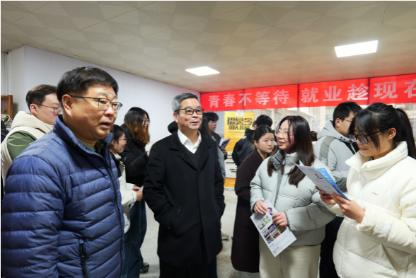秦家沛与用人单位就人才招聘需求、校企协同培养、积极推进校企合作等进行深入交流,还与求职毕业生亲切交谈,详细了解求职进展与就业意向,勉励大家把握机遇、理性定位,在实践中锤炼本领、实现价值。