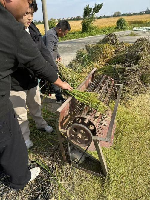 水稻组在淮安市农科院深度参与水稻考种全流程。在导师悉心指导下,从田间选取代表性植株,精确测量株高、剑叶长度、有效分蘖数等关键农艺性状,到室内脱粒后细致鉴定结实率、千粒重、垩白度等品质与产量性状,同学们的精益求精,为优良新品种筛选筑牢数据根基。