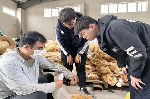玉米组于淮安市农科院专注玉米考种核心工作。同学们手持测量工具,对果穗的穗长、穗粗、秃尖长、穗行数等指标进行精准测量,同时细致鉴定籽粒百粒重、粒型、粒色、含水量等关键品质性状并详实记录,深刻体悟到每一组数据对育种科研的重要价值。