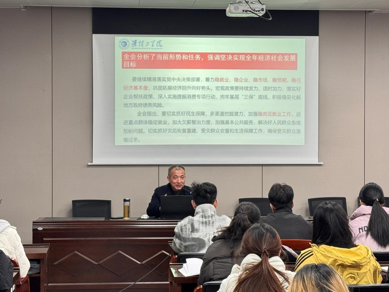 赵志国老师从全会基本情况、全会公报重点内容、“十五五”时期重大举措和战略任务三大板块展开详解。强调了学习贯彻二十届四中全会精神是当前和今后一个时期的重大政治任务,全体党员要深刻领悟“两个确立”的决定性意义,增强“四个意识”、坚定“四个自信”、做到“两个维护”。学生党员将以此次学习为契机,持续深学细悟全会精神,切实把学习成果转化为攻坚克难、干事创业的实际行动,争做新时代勇担使命的奋进者。