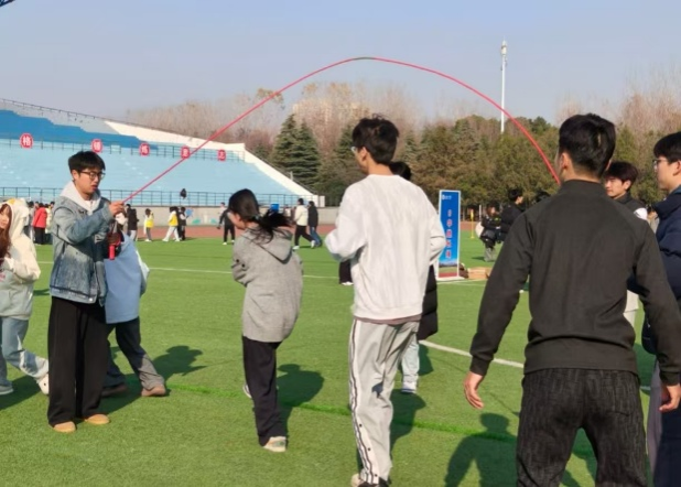 在集体项目中,交通学子配合默契、气势如虹。竞速舞龙赛道上,队员们步伐矫健、龙身飞舞,展现力与美的交融;拔河赛场呐喊震天,大家心往一处想、劲往一处使,以必胜的决心凝聚团队力量;“8”字跳长绳环节,队员们穿梭如燕、衔接流畅,默契的配合划出活力的圆弧;投壶区内,选手们沉着凝神,每一次投掷都是对技巧与心态的考验;抛绣球赛场笑语连连,默契的传递与精准的接投交织成趣;旱地龙舟更是趣味横生,队员们节奏一致、奋勇向前,在协调中冲刺。