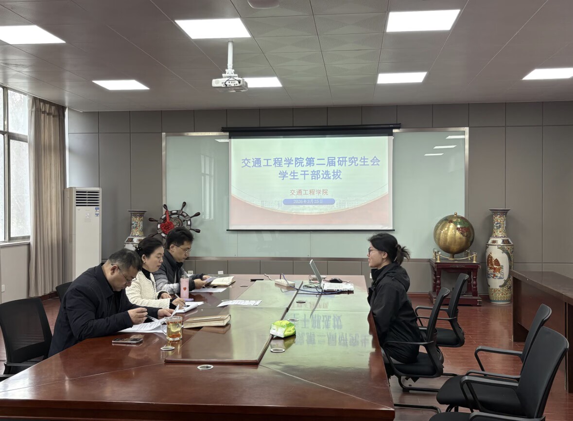 为进一步加强研究生骨干队伍建设,3月25日上午,交通工程学院在学院会议室举行第二届研究生会干部选拔面试。院党委书记桑海云、副书记钱国庆、研究生辅导员刘延青担任面试评委,全体入围研究生参加了本次面试。