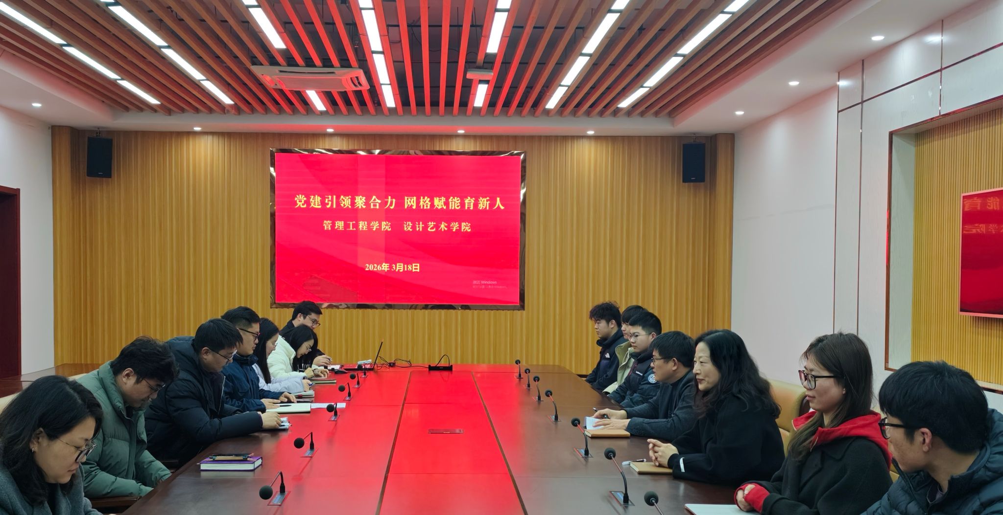 为贯彻落实树立和践行正确政绩观学习教育和“我为师生办实事”要求,推动基层党建与立德树人深度融合,3月18日下午,淮安大学管理工程学院与设计艺术学院在萧湖校区联合举办“党建引领聚合力 网格赋能育新人”学生一站式社区与学生党员网格员党建共建活动。管理工程学院党委书记李继林、设计艺术学院党委书记李晓慧出席活动,两院学生党支部书记、全体辅导员及党员师生代表参会。