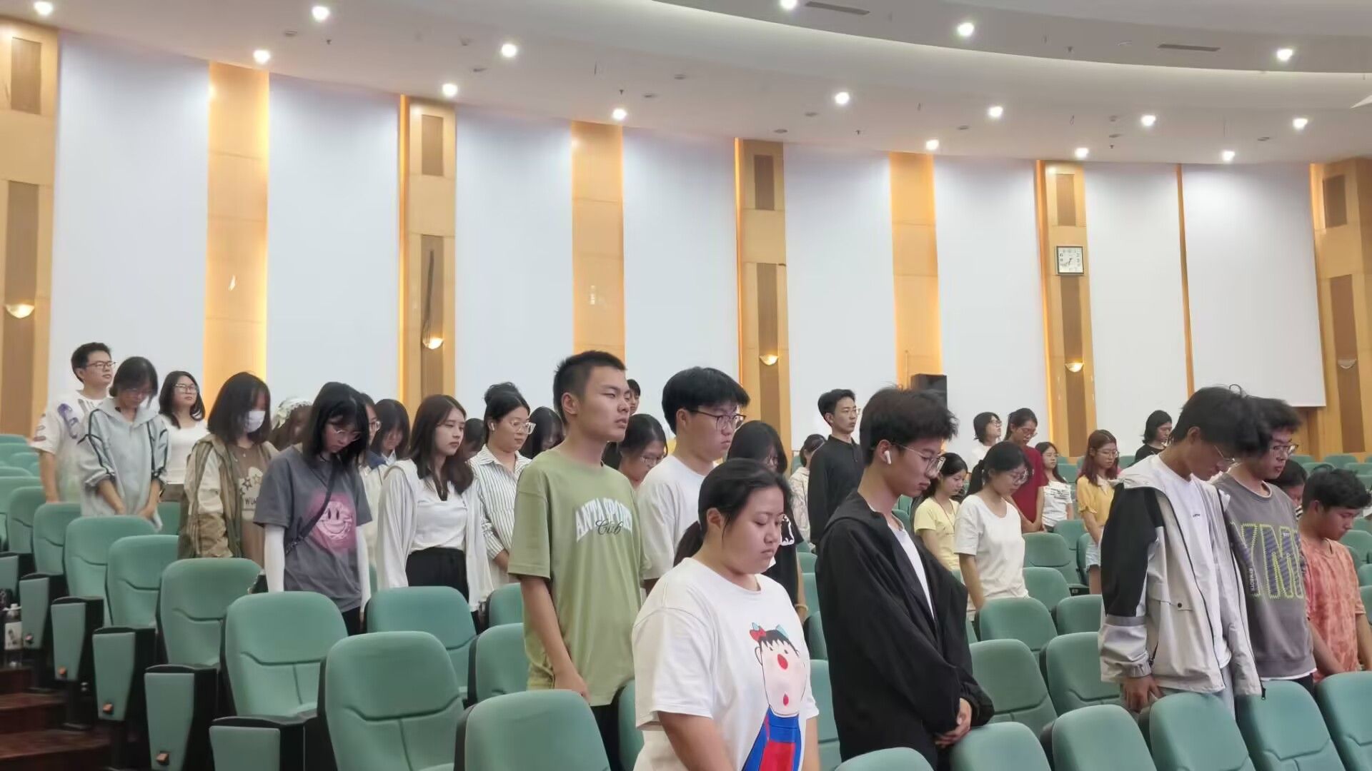 当日下午,报告厅内气氛凝重而肃穆。师生们整齐肃立,神情庄重,共同参与了这场意义深远的默哀仪式。随着主持人低沉而庄重的声音响起,全场师生低头默哀一分钟。在这一分钟里,时间仿佛凝固,每个人都沉浸在对革命先烈的深切缅怀之中。他们的脑海中浮现出无数革命先烈为了国家独立、民族解放,不惜抛头颅、洒热血的英勇画面。这短暂而漫长的一分钟,是师生们对先烈们最崇高的敬意和最沉痛的哀悼。