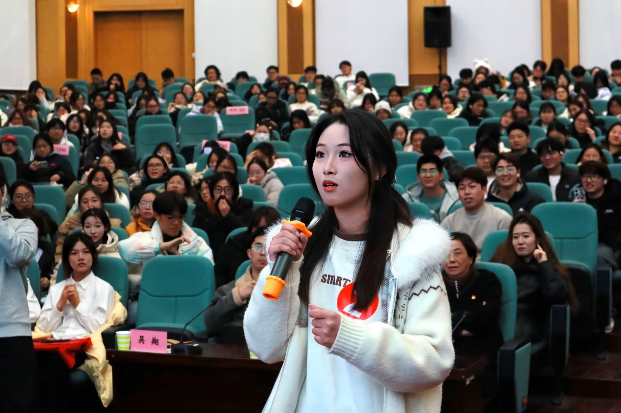 各代表队沉着应对,答题准确率居高不下。当被问及“‘落红不是无情物,化作春泥更护花’表达了作者怎样的情感”时,来自2024级社会工作的选手从容作答:“这是作者龚自珍辞官后所作,表达了自己虽已辞官,但仍然心系家国,想要出一份力的思想”。精准的解读赢得全场掌声,也为后续环节奠定了沉稳雅致的基调。