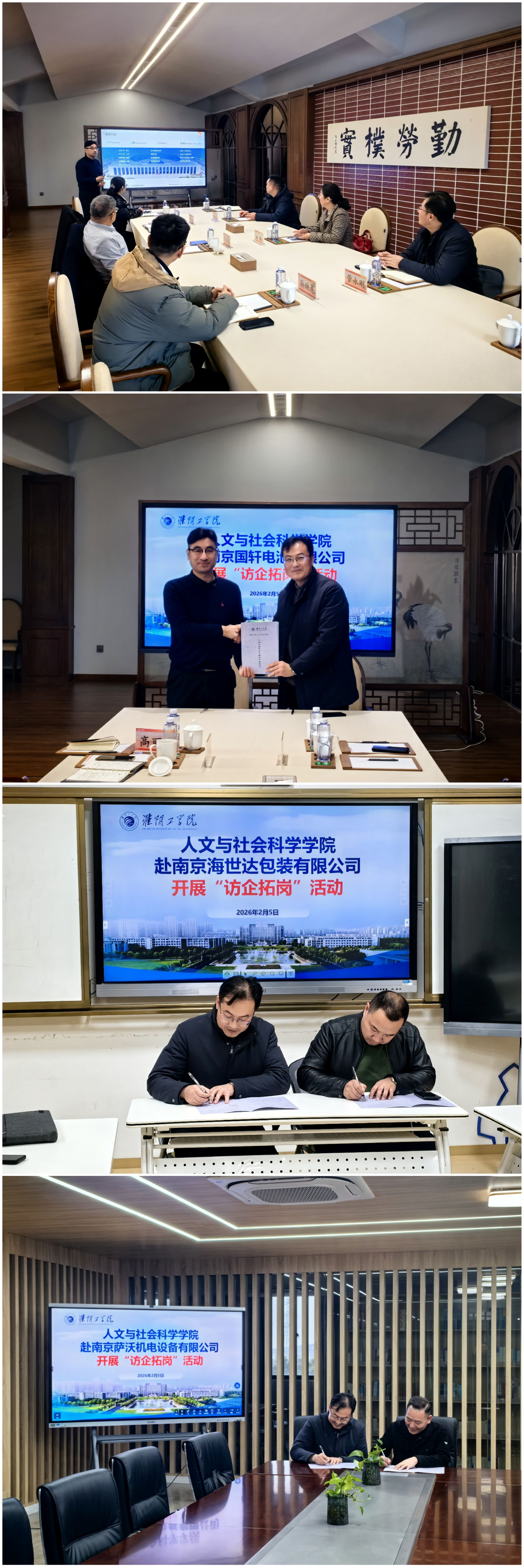 为深入落实高校毕业生就业工作要求,精准对接企业用人需求,持续做好寒假期间毕业生就业服务保障工作,人文与社会科学学院党委书记田萍带队开展寒假访企拓岗专项行动,走访对接南京国轩电池有限公司、南京海世达包装有限公司、南京萨沃机电设备有限公司等三家优质企业;同时,学院辅导员团队开启线上就业指导服务,为毕业生提供简历一对一精修、就业心理精准疏导,以“线下拓岗+线上指导”双线发力模式,为2026届毕业生高质量就业保驾护航。