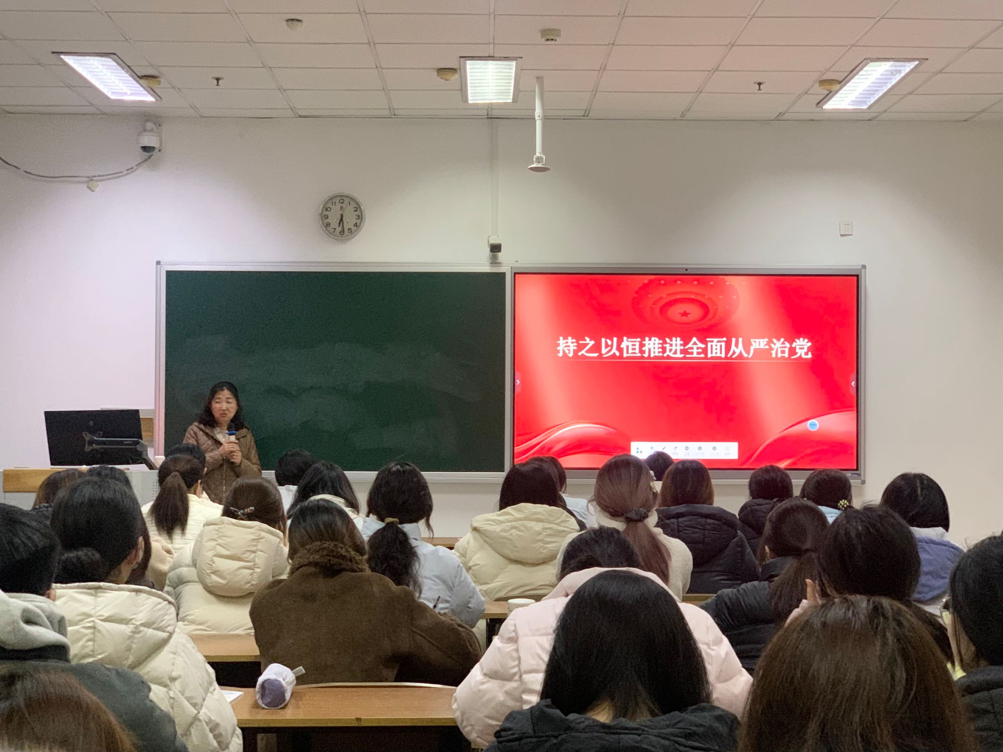 学院党委书记田萍为本次入党积极分子讲授专题党课。田萍书记以“持之以恒推进全面从严治党”为主题,结合理论阐释与实践要求,系统讲解了全面从严治党的重要意义、核心内涵与时代要求,引导参训学员进一步坚定理想信念、强化纪律意识、锤炼党性修养,树立正确的入党动机,以更加严格的标准要求自身,努力向党组织靠拢。
