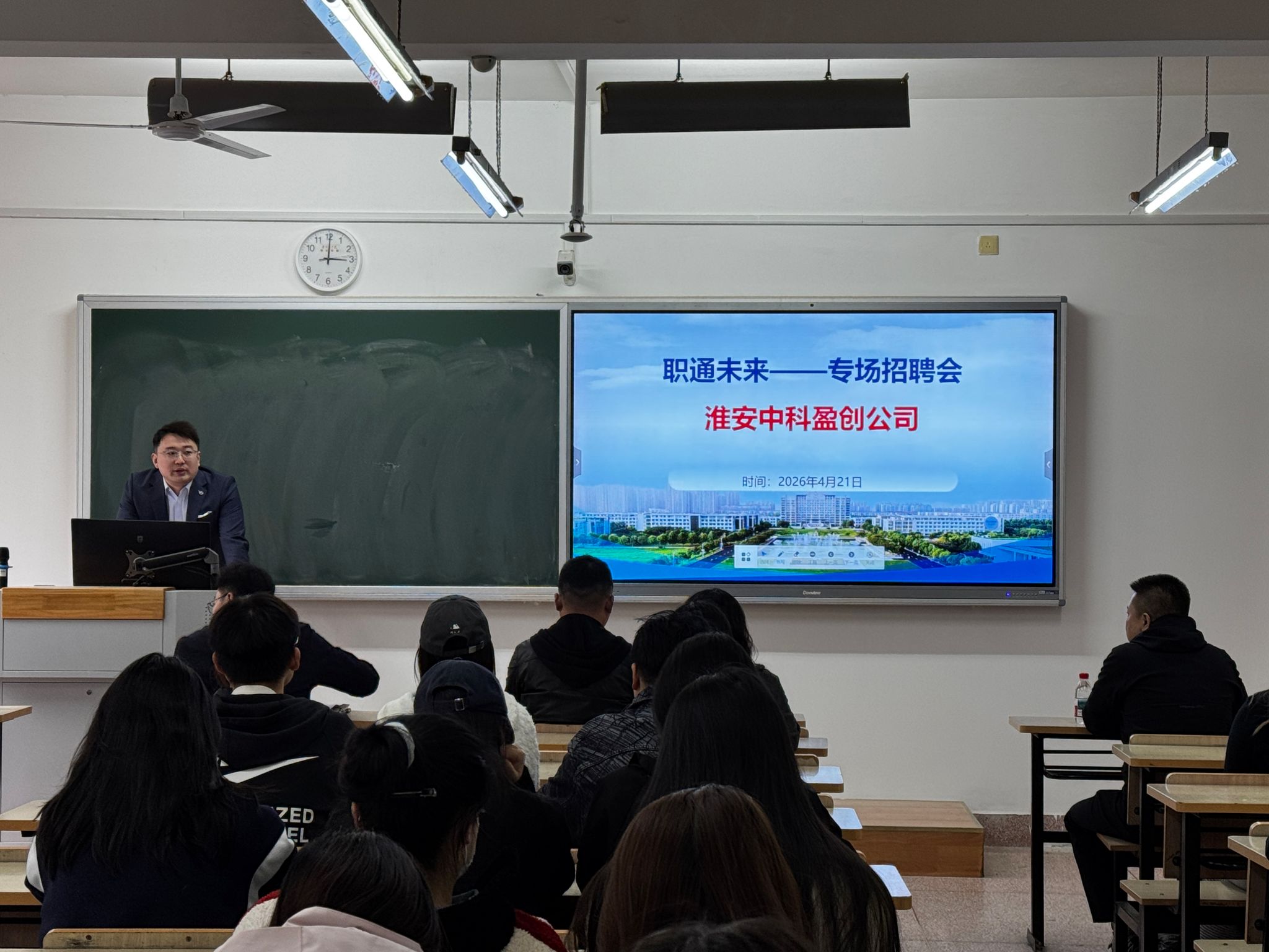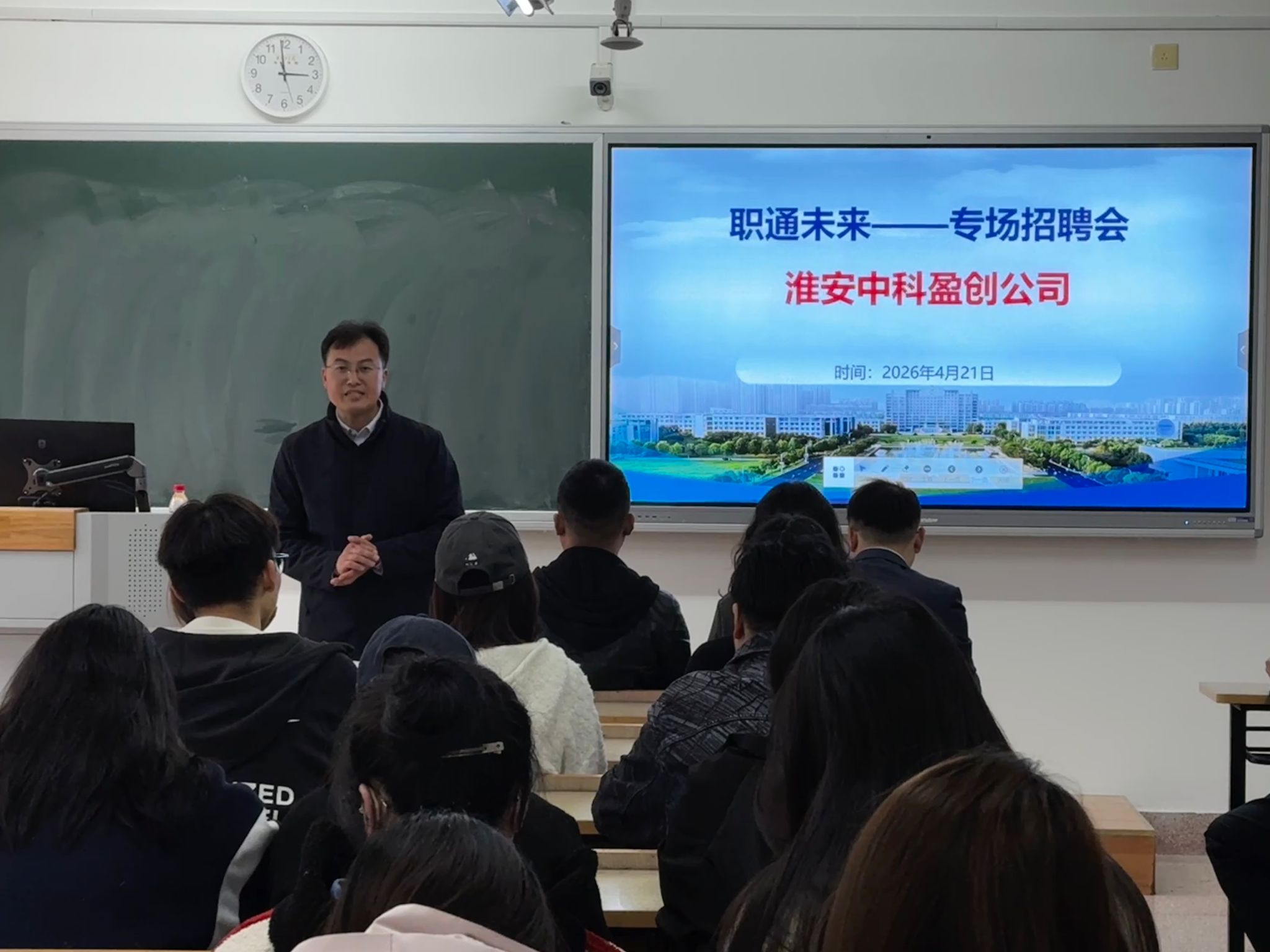 为推进2026届毕业生就业攻坚,搭建校企对接平台,4月21日下午,在淮安市人民政府外事办公室的牵线搭桥下,人文与社会科学学院“职通未来”2026届毕业生专场招聘会在北京路校区顺利举行。本次招聘会特邀两家优质校友企业返校揽才,中科盈创总经理卜春阳(2013届校友)、捷美达机电设备有限公司总经理张涛(2007届校友)分别带队,为学弟学妹带来优质岗位。人文与社会科学学院党委副书记管永刚出席活动。