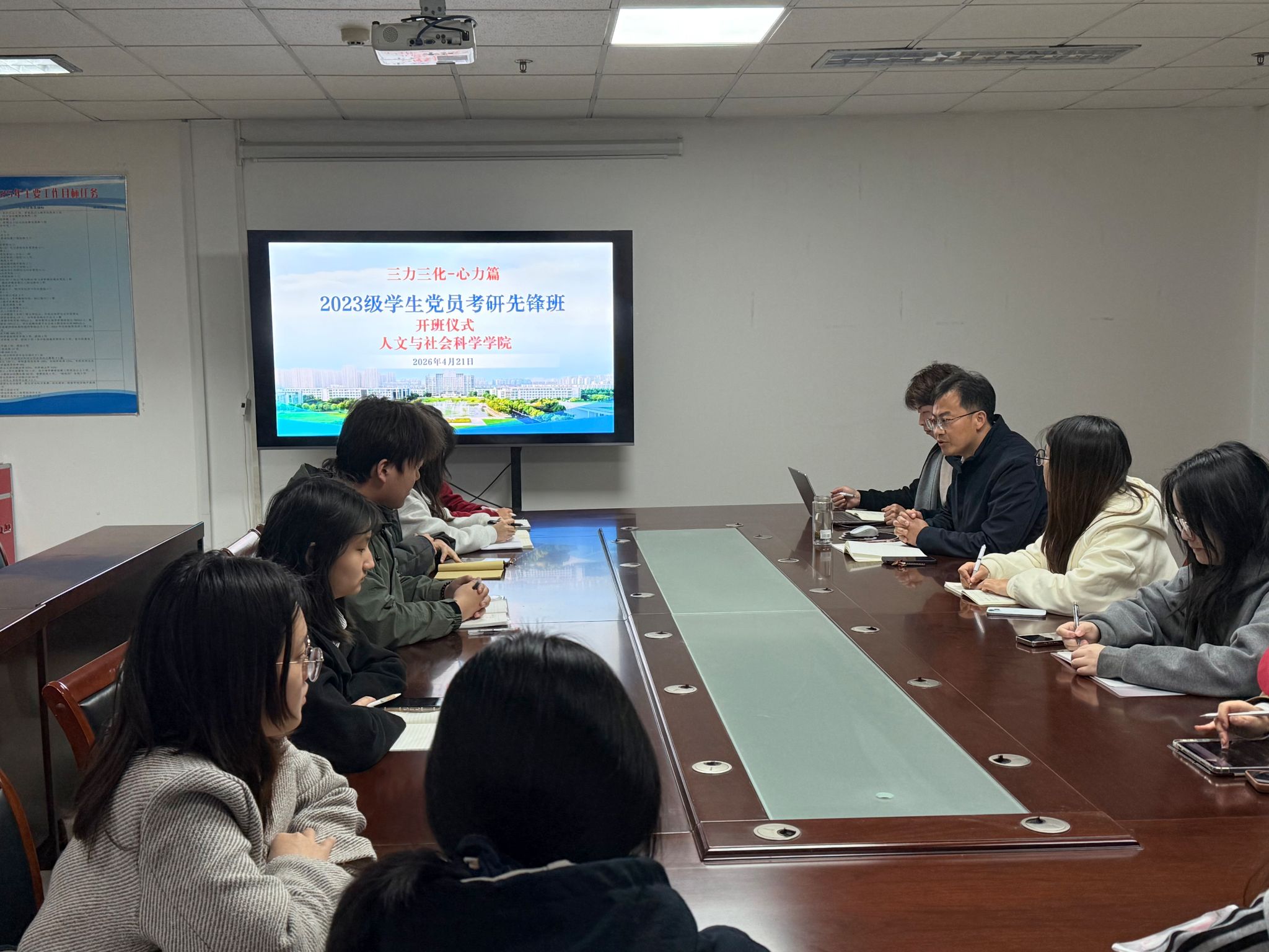 4月21日下午,2023级学生党员考研先锋班开班仪式在尚学楼9楼会议室开展,本次会议由人文与社会科学学院党委副书记管永刚主持,2023级全体党员参加。