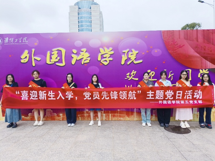 2025年9月13日,为了确保2025级新生入学报到工作的有序开展,发挥党员的先锋模范作用,外国语学院在品学楼1号楼开展“喜迎新生入学,党员先锋领航”主题党日活动。本次活动由外国语学院党委副书记、副院长祖维、第五党支部支部书记朱胜男主持,外国语学院第五党支部全体党员参与。