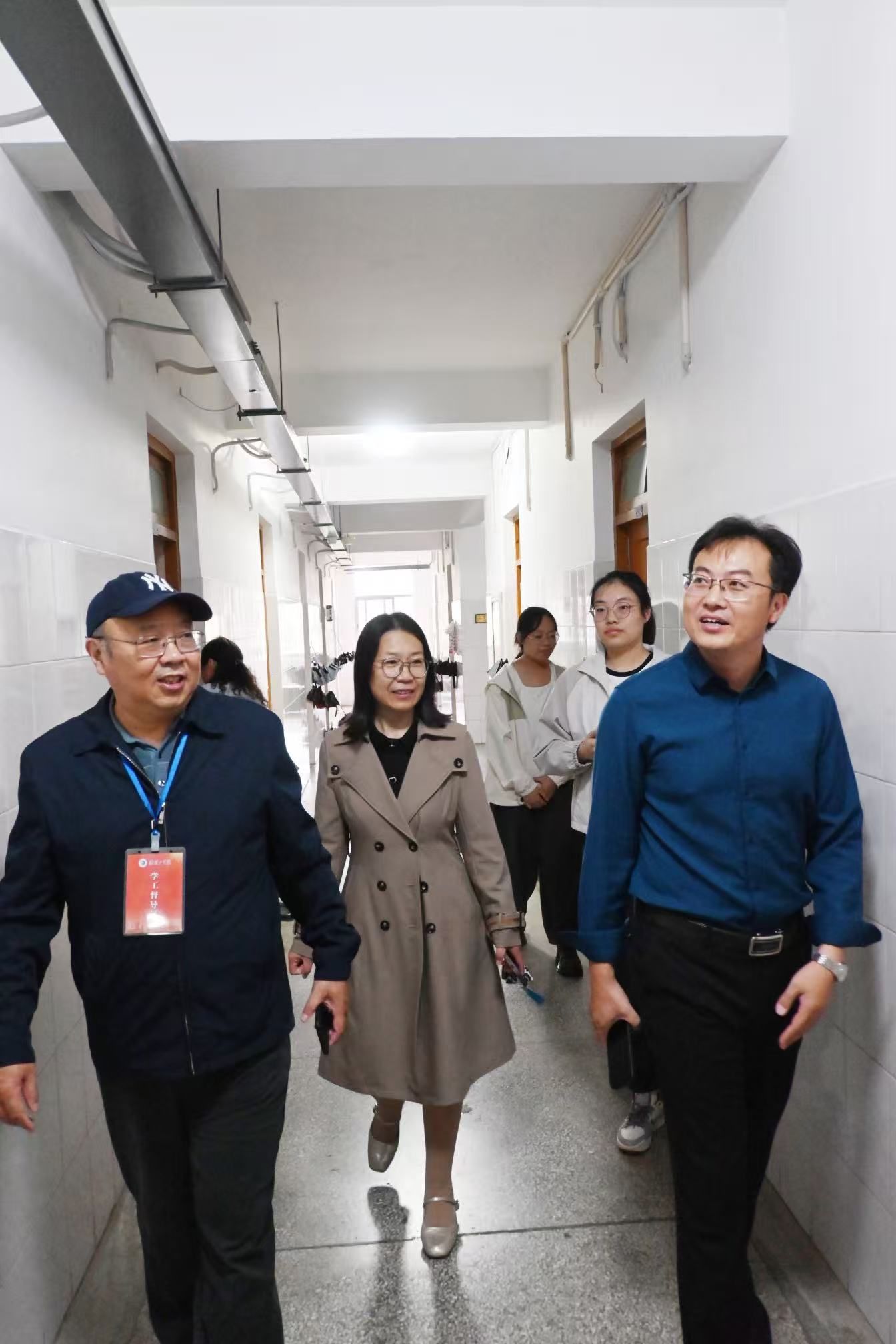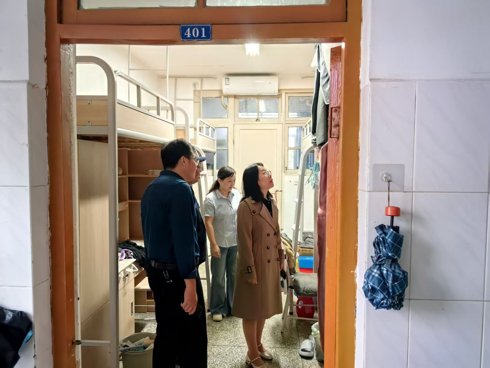 工作组成员一同细致查看了各宿舍的卫生清洁、物品摆放、用电安全等情况,张乃军针对每个宿舍的实际情况逐一点评,对符合文明宿舍标准的宿舍给予表扬,对有待改进的地方提出明确整改要求,并为评选出的文明宿舍和党员示范宿舍分别挂牌;宿管人员现场指导学生如何摆放物品,学生们认真聆听,对整改要求和摆放建议积极回应,当场就着手调整部分物品位置。