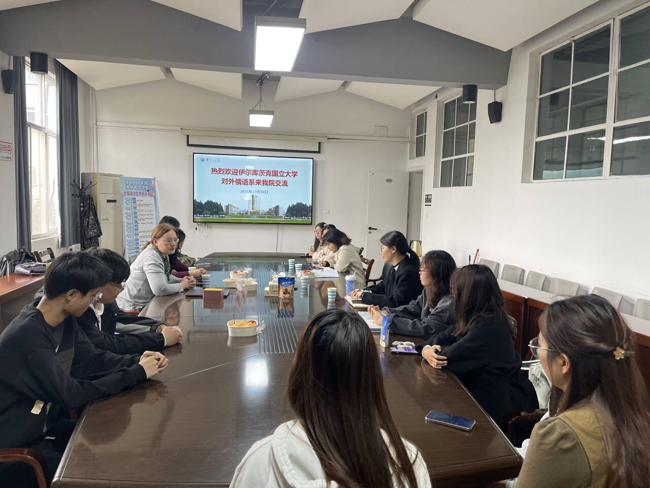 10月30日下午,外国语学院俄语系联合俄罗斯伊尔库茨克国立大学对外俄语系,共同举办我院学生赴俄留学交流座谈专项会议。伊尔库茨克国立大学外语传媒学院对外俄语系副主任Юлия Александровна亲临现场与学生面对面沟通,针对学费标准、住宿条件、申请流程、入系考试等核心关切逐一详解,并播放了伊尔库茨克国立大学宣传片,为我院学生赴俄深造规划提供全方位、可视化参考。